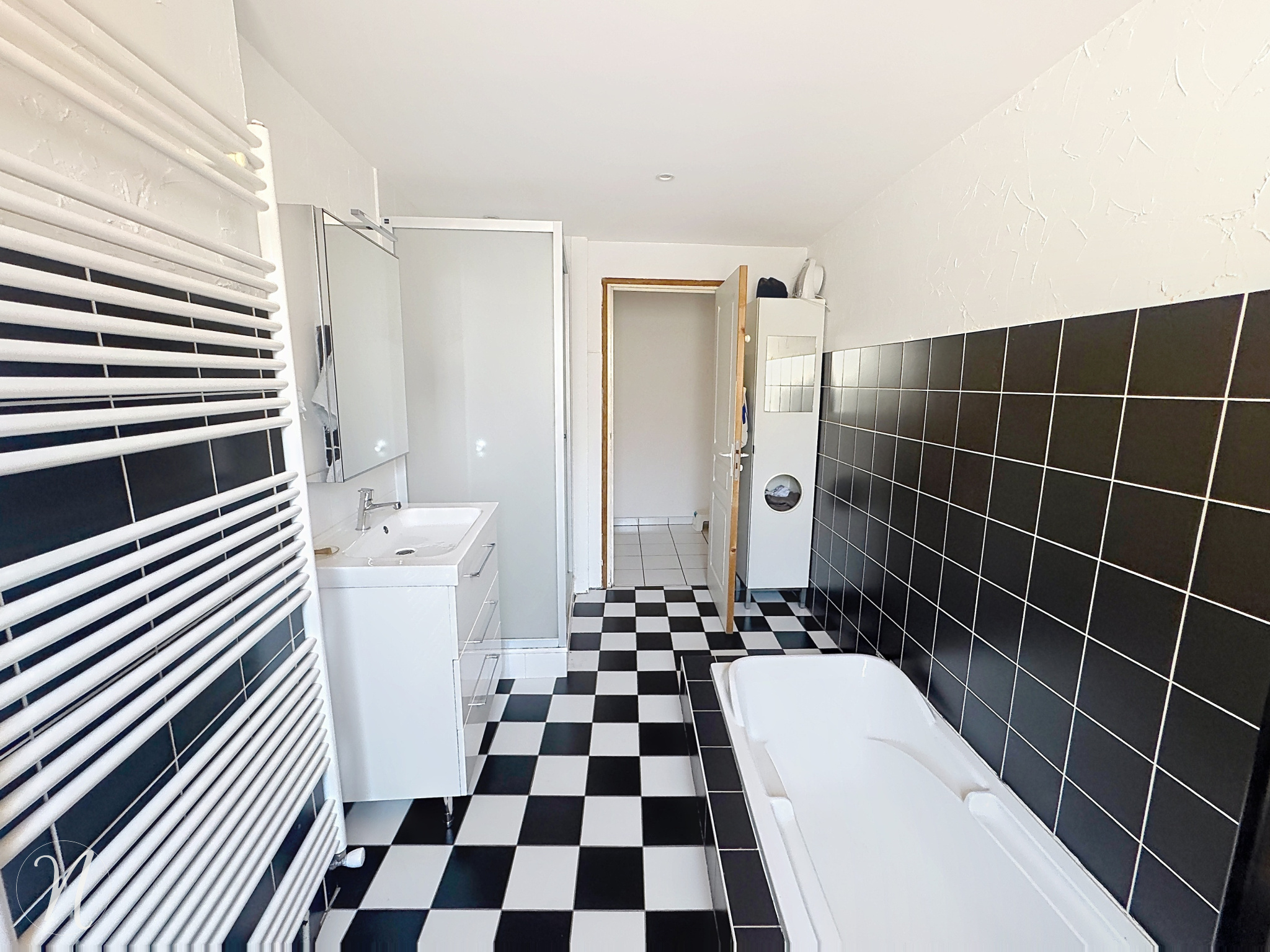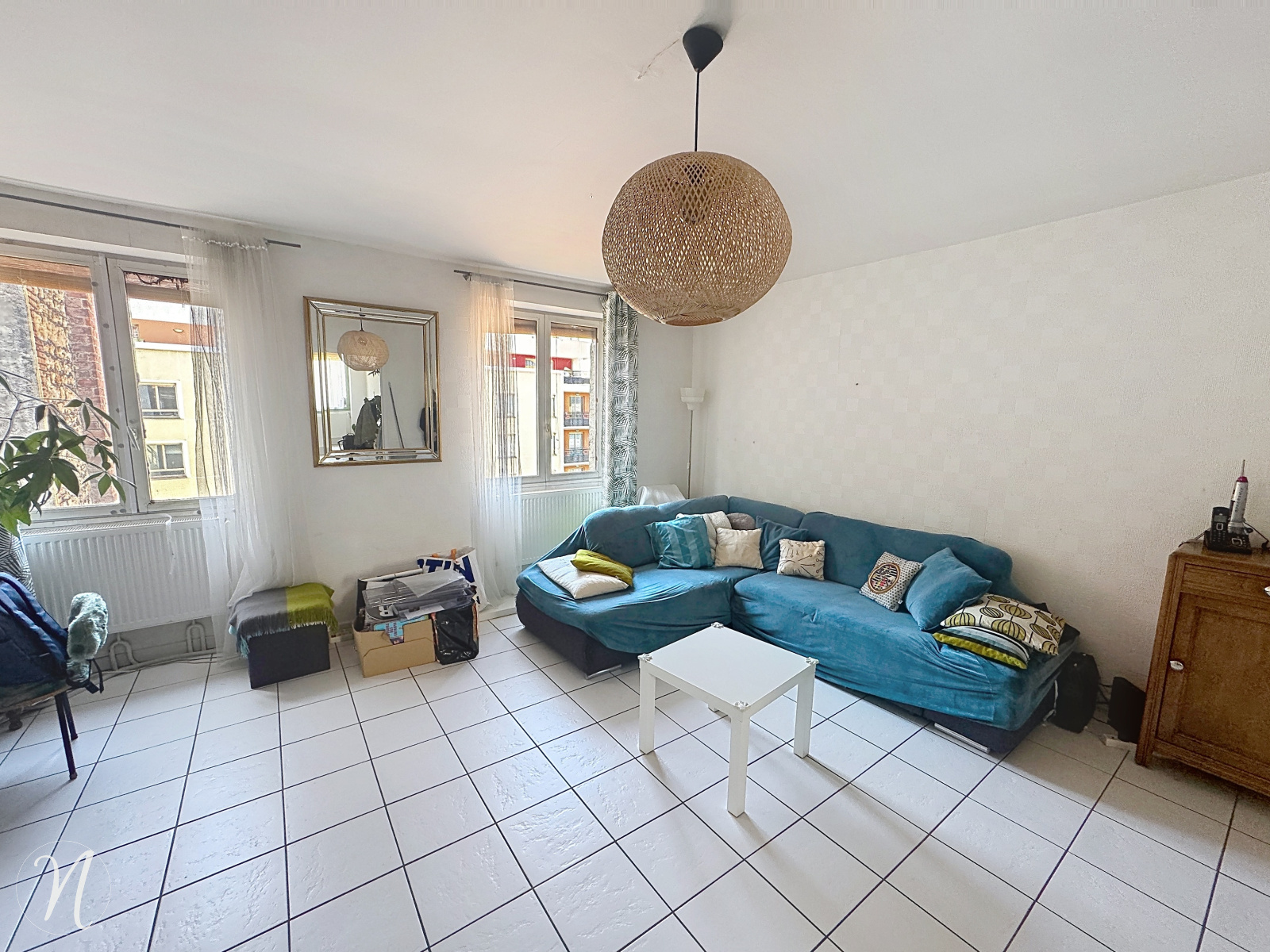 Appartement au 1 er étage à embellire de type t4 91,04m2 comprenant cuisine équipée avec buanderie ouverte sur séjour salon, 2 chambres, salle de bain refaite avec baignoire et douche, 2 belles chambres,