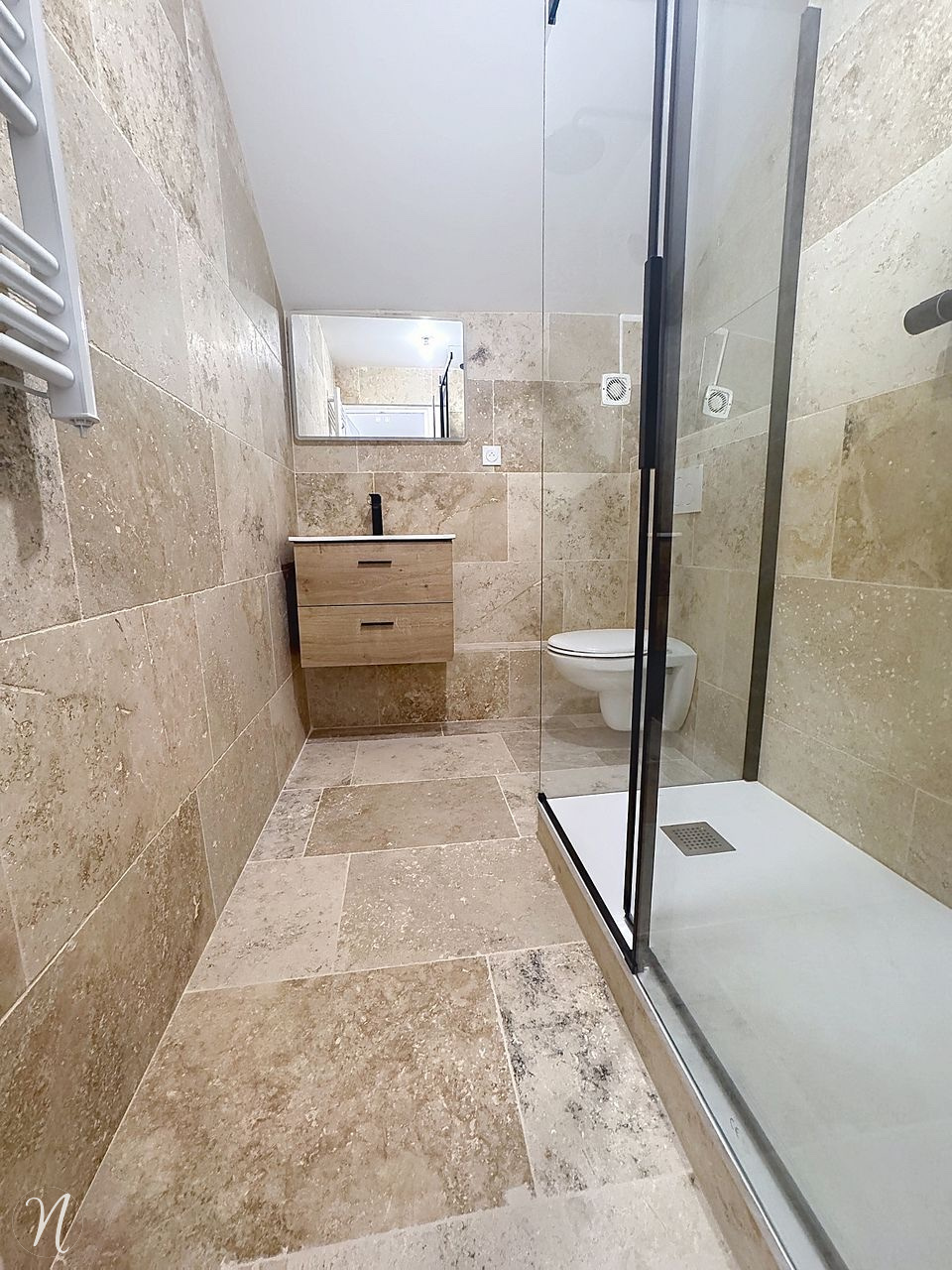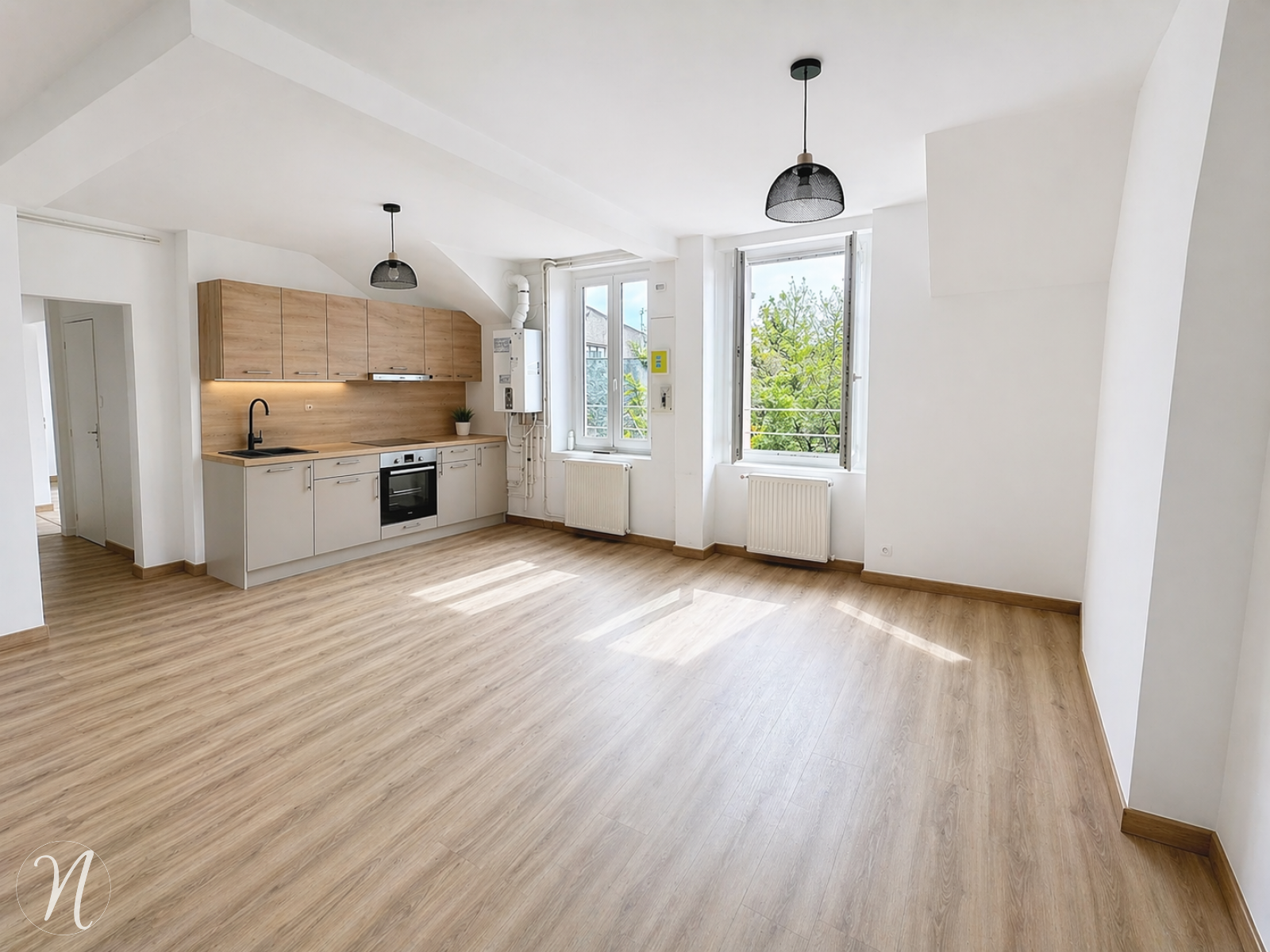 Appartement F3 au 2ème et dernier étage d'une petite copropriété de 5 lots entierement rénové comprenant, hall d'entrée, cuisine ouverte sur vaste séjour en parquet, une chambre + bureau ou chambre mansardée, superbe salle d'eau (douche italienne) avec wc.