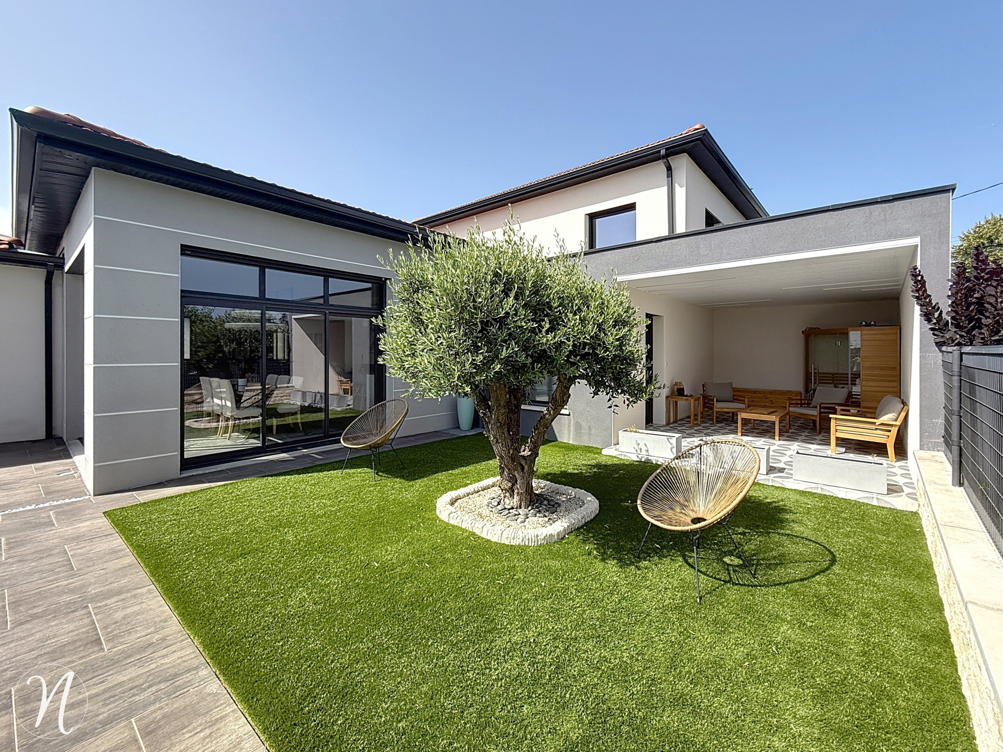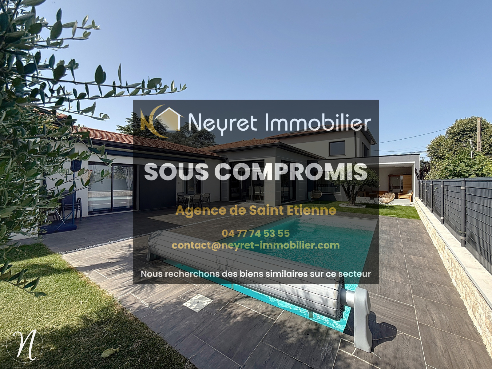 Saint-Joseph (42800)Développant 226 m² habitables sur une parcelle de plus de 950 m², Neyret Immobilier vous propose en co-exclusivité cette maison contemporaine construite en 2016 s’inscrit parmi les biens haut de gamme les plus recherchés du secteur résidentiel de Saint-Joseph, dans la Loire, et séduira les acquéreurs en quête d’un cadre de vie alliant élégance, volumes et performance énergétique. Dès l’entrée, la sensation d’espace et la luminosité s’imposent naturellement, portées par une vaste pièce de vie largement ouverte sur l’extérieur grâce à de généreuses baies vitrées et sublimée par une hauteur sous plafond remarquable de plus de 3,20 mètres, conférant au lieu une atmosphère à la fois spectaculaire et chaleureuse. L’agencement intérieur, fluide et parfaitement fonctionnel, propose six chambres dont une véritable suite parentale avec salle d’eau privative et dressing, trois salles d’eau aux finitions soignées, ainsi qu’une grande cuisine ouverte équipée de matériaux et d’équipements de qualité, pensée pour le confort et la convivialité au quotidien. La maison offre une configuration majoritairement de plain-pied, garantissant une accessibilité optimale et un confort de vie rare, complétée par un vaste garage de 60 m² répondant aussi bien aux besoins de stationnement qu’au stockage. Les prestations techniques sont à la hauteur du standing du bien avec un chauffage au sol par pompe à chaleur, une climatisation encastrée assurant un confort thermique toute l’année, un double vitrage phonique garantissant un calme absolu, une isolation haut de gamme et un classement énergétique en DPE A, gage d’une consommation maîtrisée et d’un habitat respectueux de l’environnement. Les extérieurs, parfaitement entretenus, prolongent harmonieusement les espaces de vie avec un terrain paysager sans vis-à-vis, une piscine chauffée de 7 x 3 mètres sécurisée, ainsi qu’une terrasse couverte intégrant un sauna, véritable espace bien-être à domicile. Implantée dans un environnement calme et recherché, à proximité immédiate des commodités et des axes de communication, cette propriété bénéficie d’un emplacement privilégié à moins de quinze minutes de Saint-Étienne. Bien rare sur le marché, cette maison d’exception est proposée à la vente et mérite toute votre attention dans le cadre d’un projet résidentiel haut de gamme.