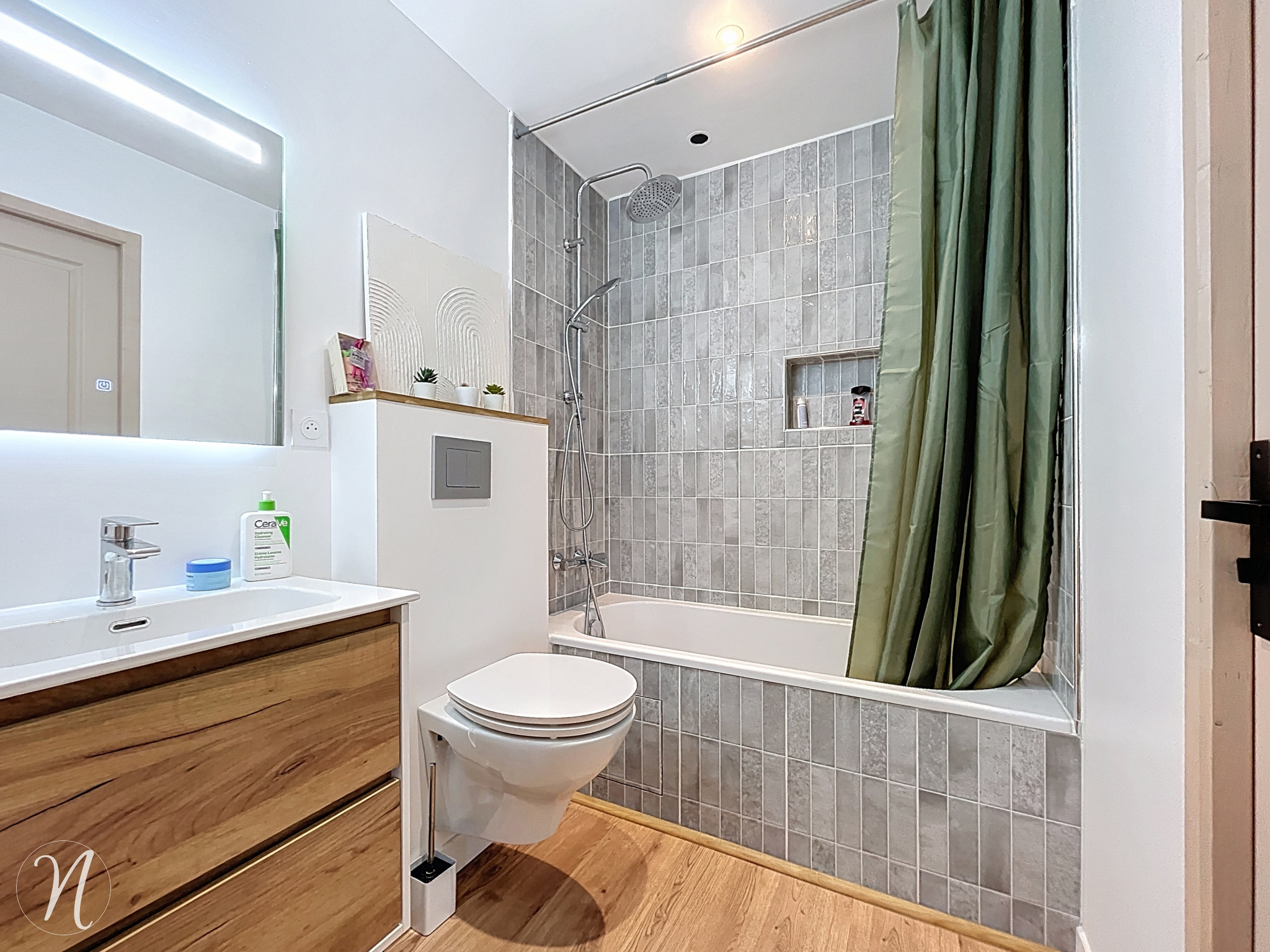 Au rez-de-chaussée, vous profiterez d’une agréable pièce de vie traversante de 26 m², lumineuse, avec cuisine américaine entièrement équipée, ainsi qu’un espace toilette/buanderie. Cet espace s’ouvre sur un jardin privatif de 25 m² exposé Ouest, idéal pour profiter des belles soirées en extérieur.