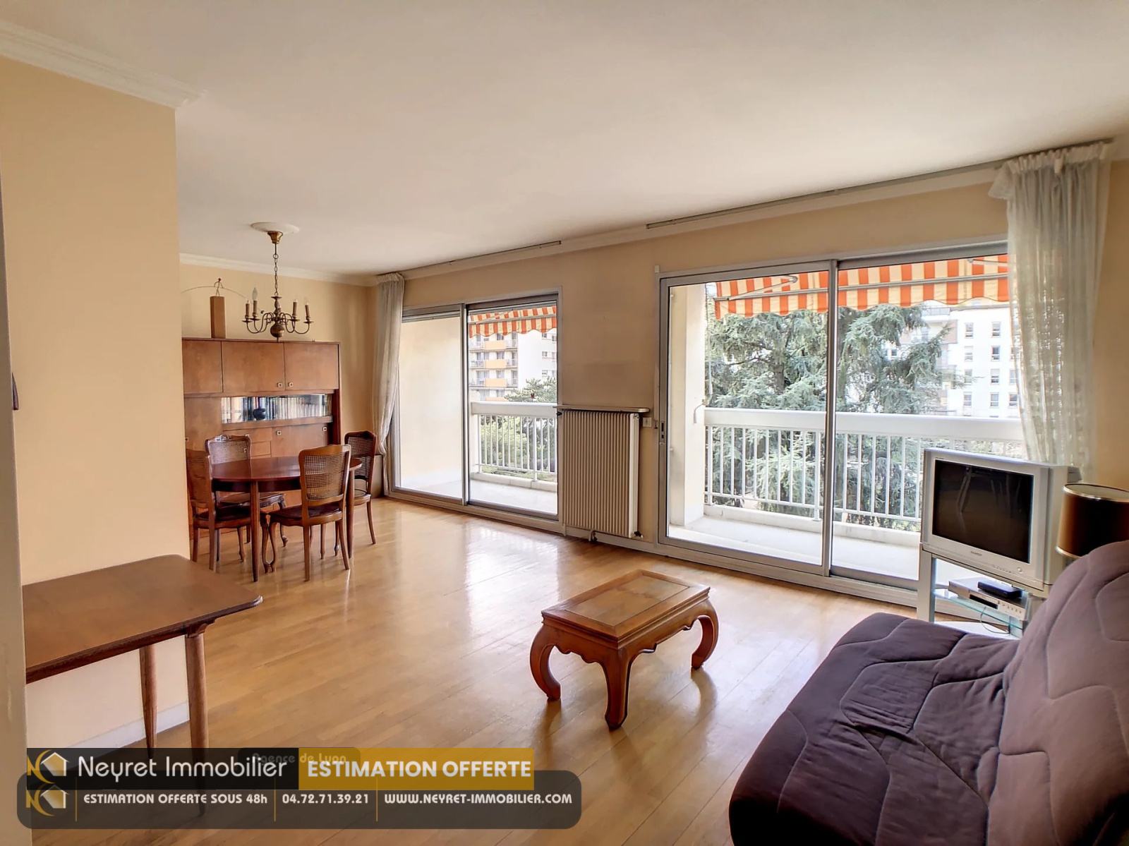 En Exclusivité, Neyret Immobilier vous présente Lyon 7 secteur SAINT-LOUIS dans une copropriété de 1970 : un appartement EST OUEST de 74,62 m2 à rafraichir comprenant une entrée, un très agréable double séjour,possibilité cuisine US, avec accès balcon de 9,8 m2, vue dégagée,une cuisine équipée, une spacieuse chambre, possibilité 2ème grande chambre, salle de bain, toilettes indépendantes. Nombreux placards. Stores électriques. Grande Cave Place de parking non attitrée. N'hésitez pas à contacter le 04.72.71.39.21