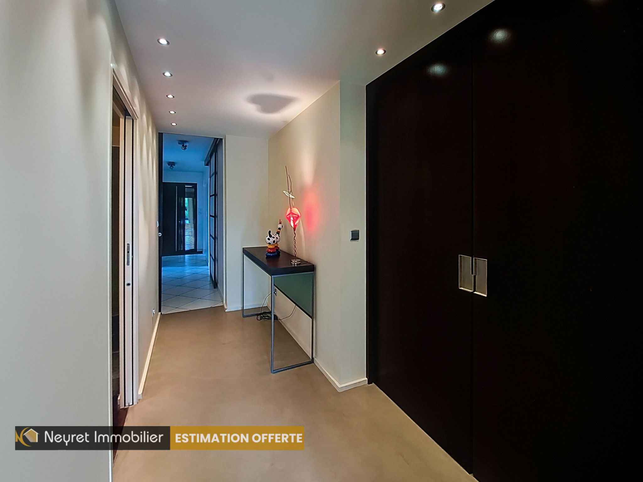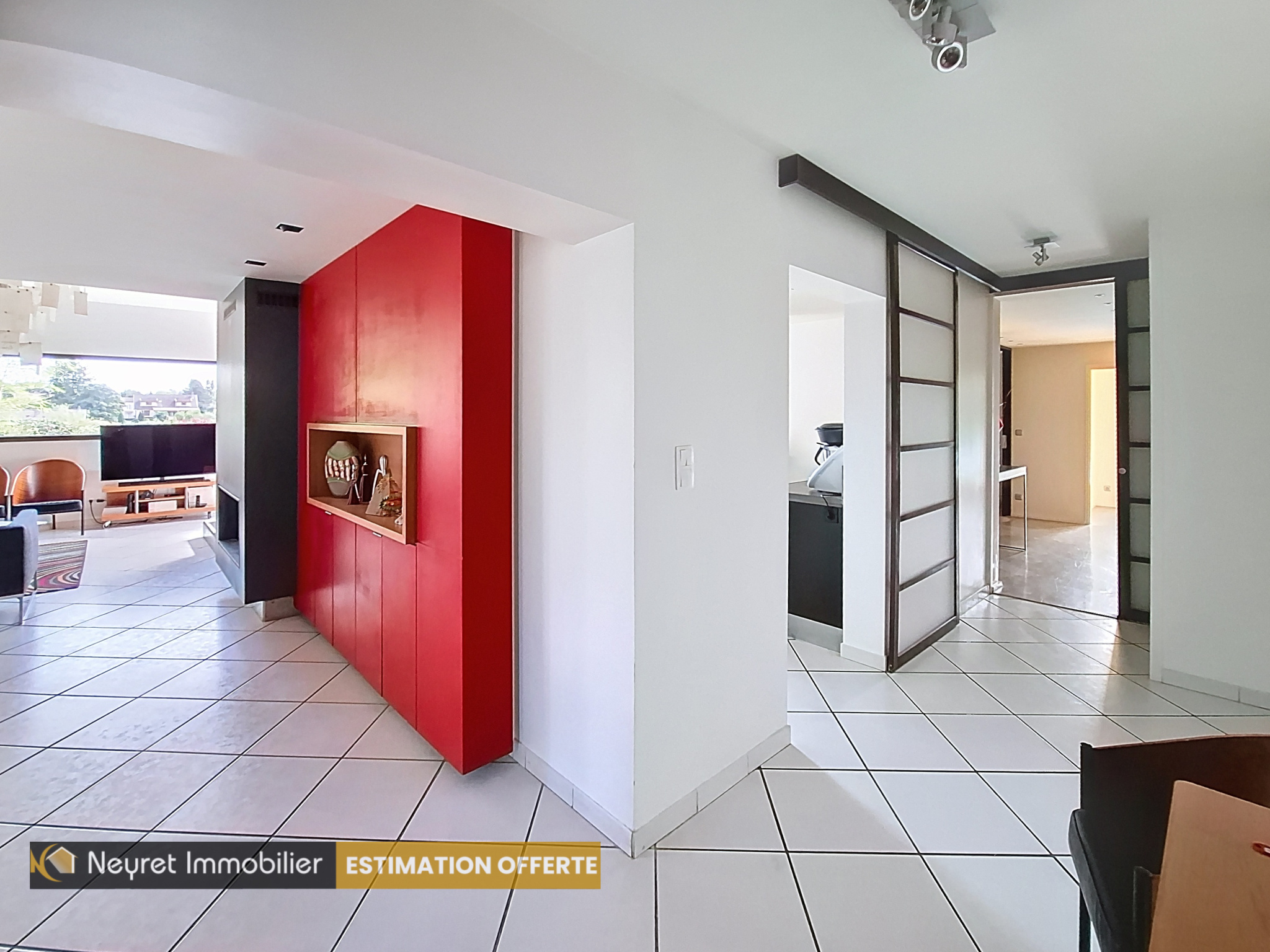 Elle se compose d'une entrée aérée, desservant une buanderie avec un accès à un atelier et cave, à une pièce de vie lumineuse, à une cuisine séparée, créée par le designer Antonio Citterio, à des toilettes indépendants. Dans sa continuité, un dégagement distribue 2 chambres en effet miroir, un grand dressing, une salle d'eau .
