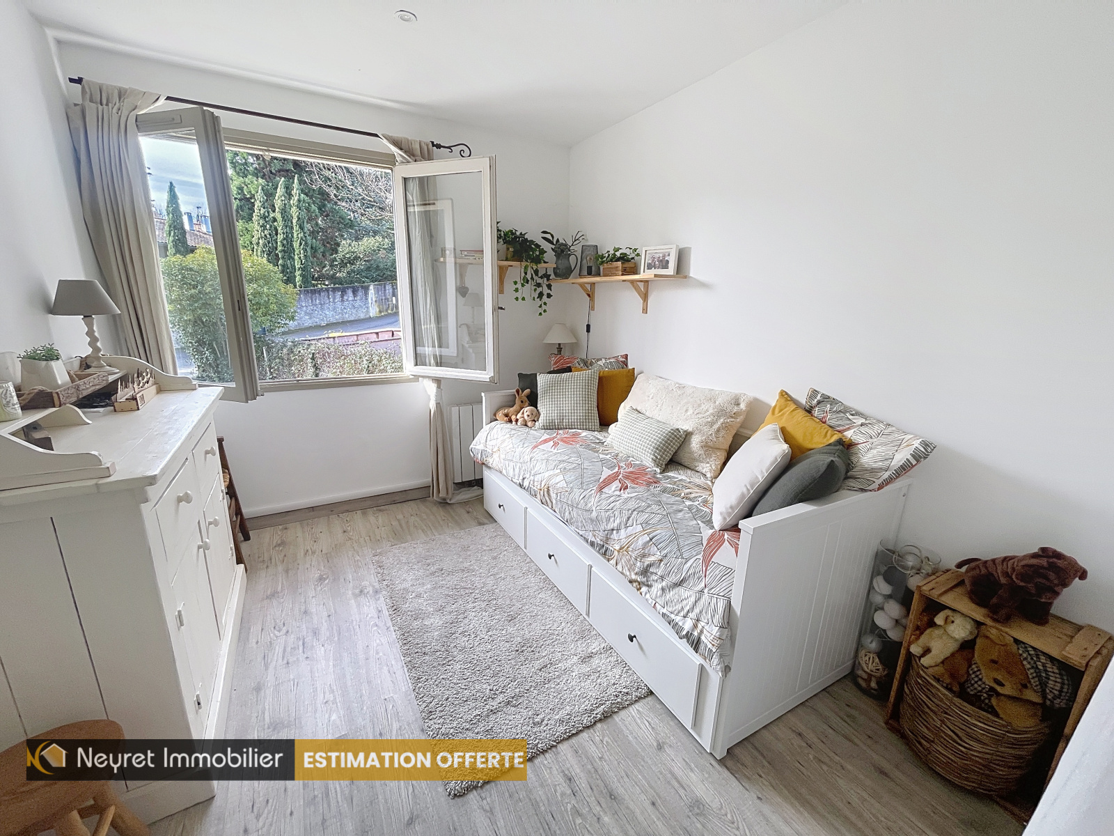 À l’extérieur, vous bénéficierez d’un terrain privatif arboré d’environ 300 m², rare sur le secteur.