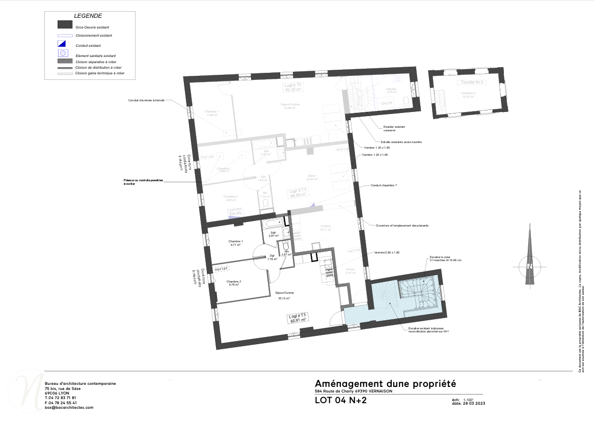 Opportunité à saisir dans une maison de maître sur les hauteurs de Vernaison de 6 lots, T3 de 60.91 m²