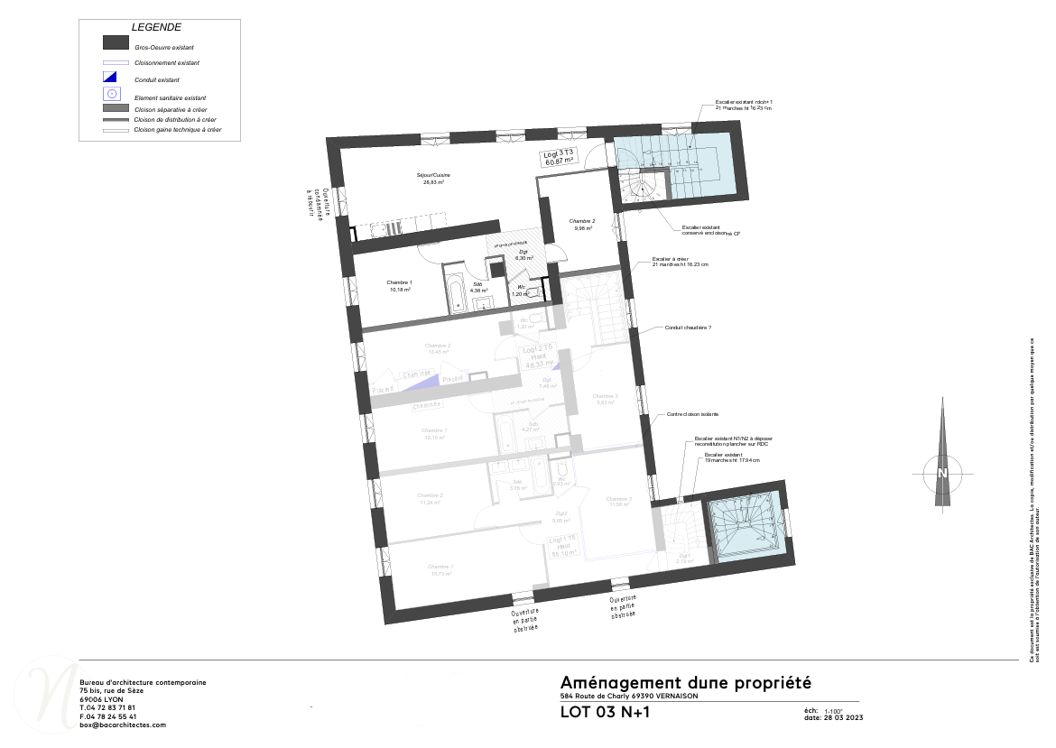 Opportunité à saisir dans une maison de maître de 6 lots sur les hauteurs de Vernaison , un T3 de 60,87 m² av